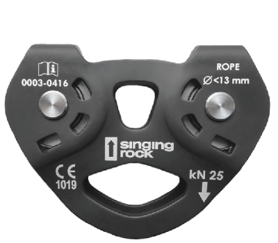 Large single pulley for industrial use and hauling systems/for textile ropes /257g/32kN/Maxrope